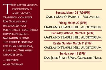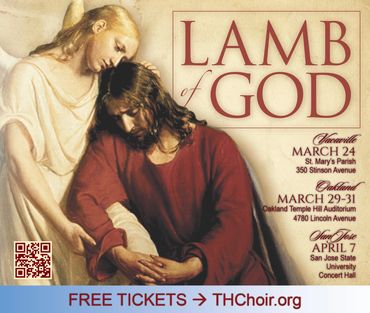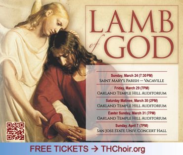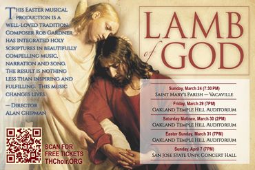 Archbishop Cordileone first suggested holding an Interfaith concert that resulted in Lamb of God. In 2011, then Bishop Cordileone of the Oakland Diocese met with leadership of The Church of Jesus Christ of Latter-day Saints to suggest that the two groups work together on an Interfaith service project. It was decided in that meeting to conduct an East Bay Interfaith Blood Drive. That began a tradition that has resulted in one of the largest faith-based blood drives in the U.S. for the American Red Cross. This drive spans areas throughout northern California in July and now includes numerous faith-based organizations. In that first year when Bishop Cordileone expressed his desire and his vision, an Easter concert was suggested to connect the gift of blood to the community with an event that also honors the gift of life through Jesus Christ. At that time, director Alan Chipman was preparing to present Lamb of God sometime in the foreseeable future, though he hadn't anticipated it for that year. But when he got the call to join the effort, there was no question or hesitation but to switch his plans to a production fast track. It quickly became a wonderful Easter season tradition.